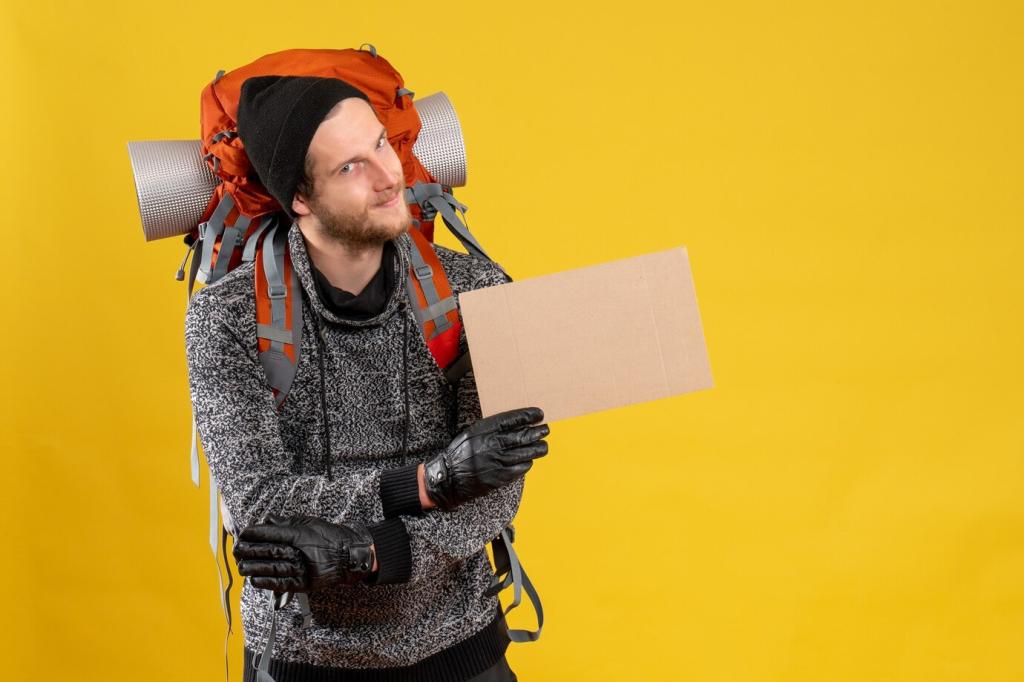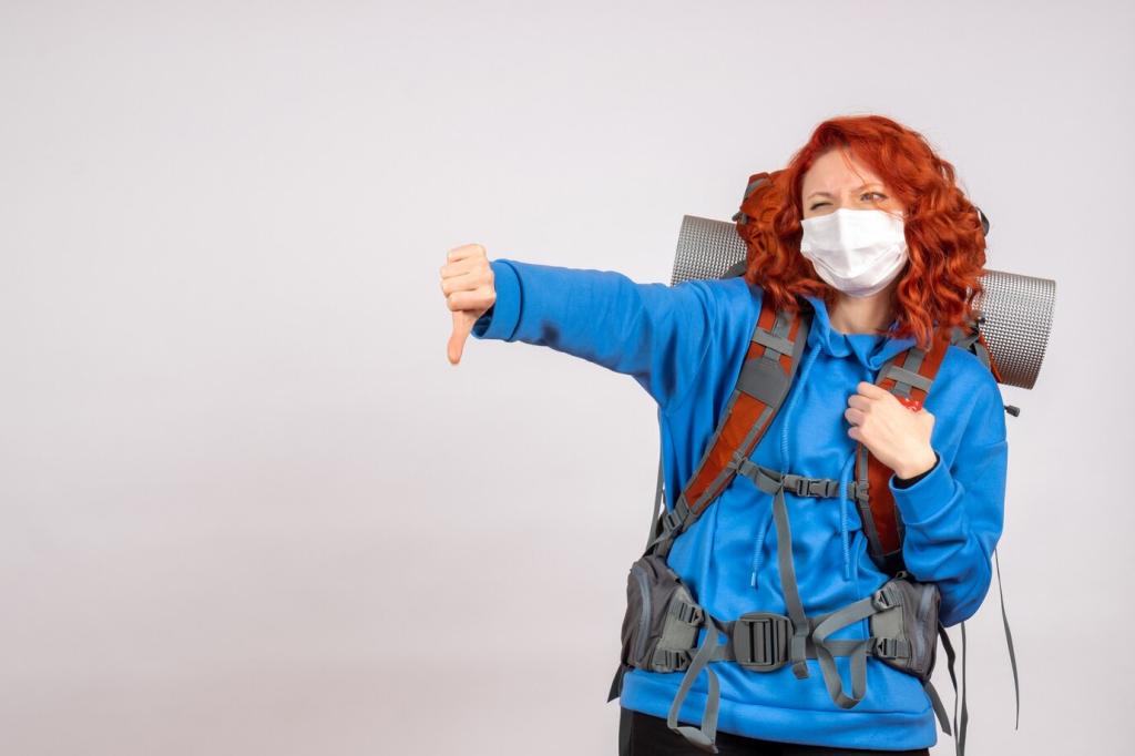 Wähle neutrale Farben, keine lauten Logos. Nutze Packing‑Cubes, Kabeltaschen und kleine Zahlenschlösser. Ein einfacher Stoffbeutel dient als „Decoy“, während das Wichtige körpernah bleibt. Reflektierende Streifen erhöhen Sichtbarkeit im Verkehr, ohne Aufmerksamkeit auf Wertgegenstände zu lenken.